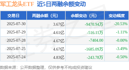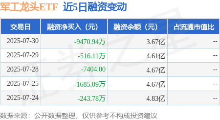 本站消息,7月30日,军工龙头ETF(512710)融资买入7622.45万元银易配资网,融资偿还1.71亿元,融资净卖出9470.94万元,融资余额3.67亿元。