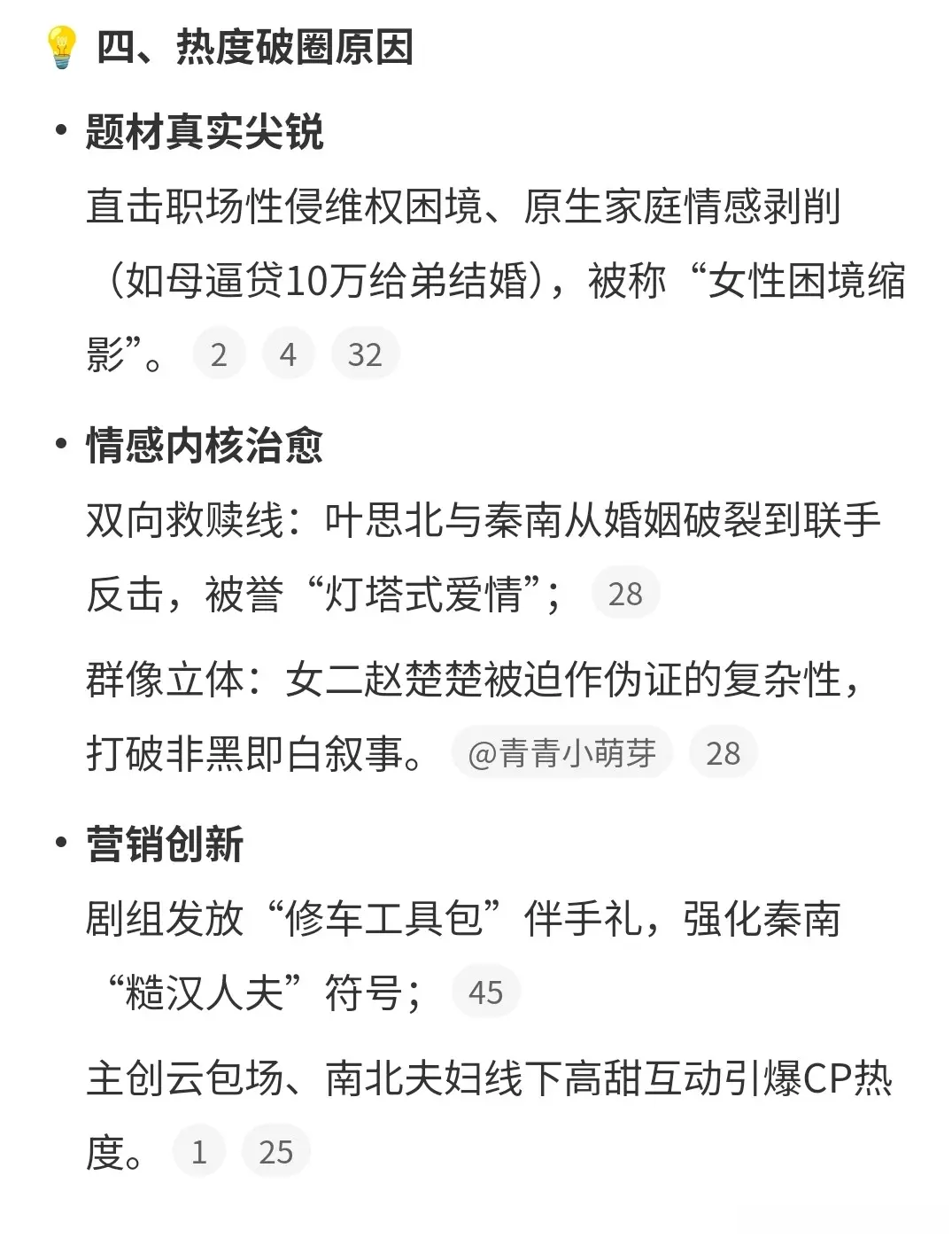 这部让明星集体沦陷的剧,藏着最戳心的现实力量。它毫不避讳撕开职场性侵、原生家庭压迫的残酷真相——毛晓彤饰演的叶思北,一边被重男轻女的家庭当成“提款机”,三年贴补弟弟三十万,一边遭遇职场侵害,连维权时都要面对“受害者有罪论”的质疑。剧中那句“你别急着求原谅,先确保你没再被扎一刀”的台词,精准戳中现实痛点,让无数观众破防。